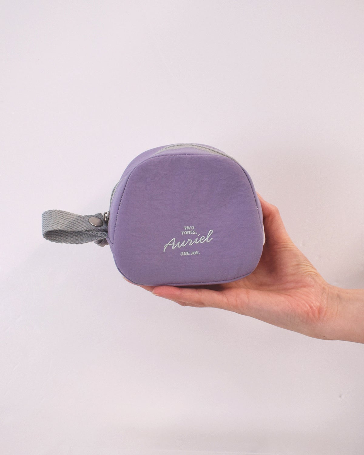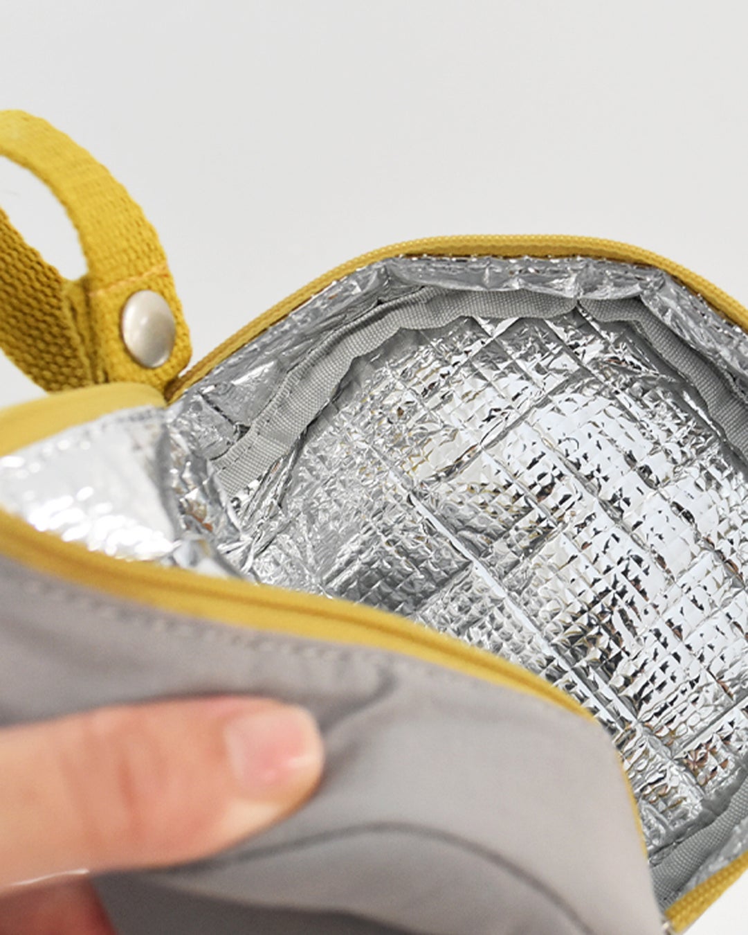1. コンビニおにぎり2個を持ち運びできるポーチ。内側はアルミ蒸着シート加工。保冷・保温効果を補助します。