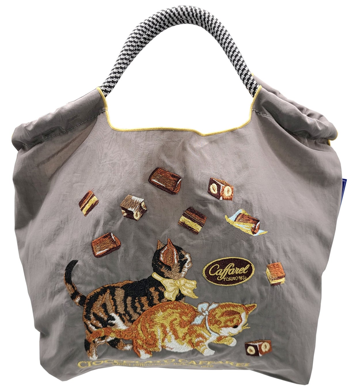 カファレルを代表するジャンドゥーヤやピエモンテといったチョコレートと愛らしいネコのアートワークが、Ball&Chainならではの精巧な刺繍で再現されています。ライトグレーとダークグレーの2色をご用意しました。シックなグレーカラーをベースとしていますので、シーンを選ばずご利用いただけます。