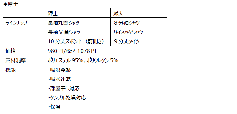 洗濯しても早く乾いてすぐに使える、ドライ機能を追加薄くてあたたかい秋冬インナー「ウォームモイスト」今年も新機能を備えて発売