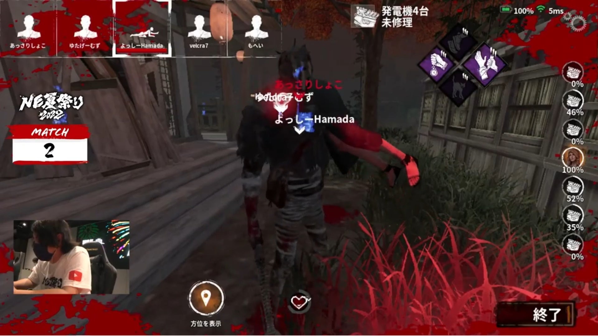 『デッドバイデイライト・モバイル』ではゲストクリエイターの柏木べるくらさん、あっさりしょこさんとともにファミリー・レジデンス山岡邸にてエキシビションマッチが2試合行われました。1試合目では柏木べるくらさんが、2試合目ではあっさりしょこさんが殺人鬼をプレイし、受賞者チームに襲い掛かります。果たしてその結果は……?