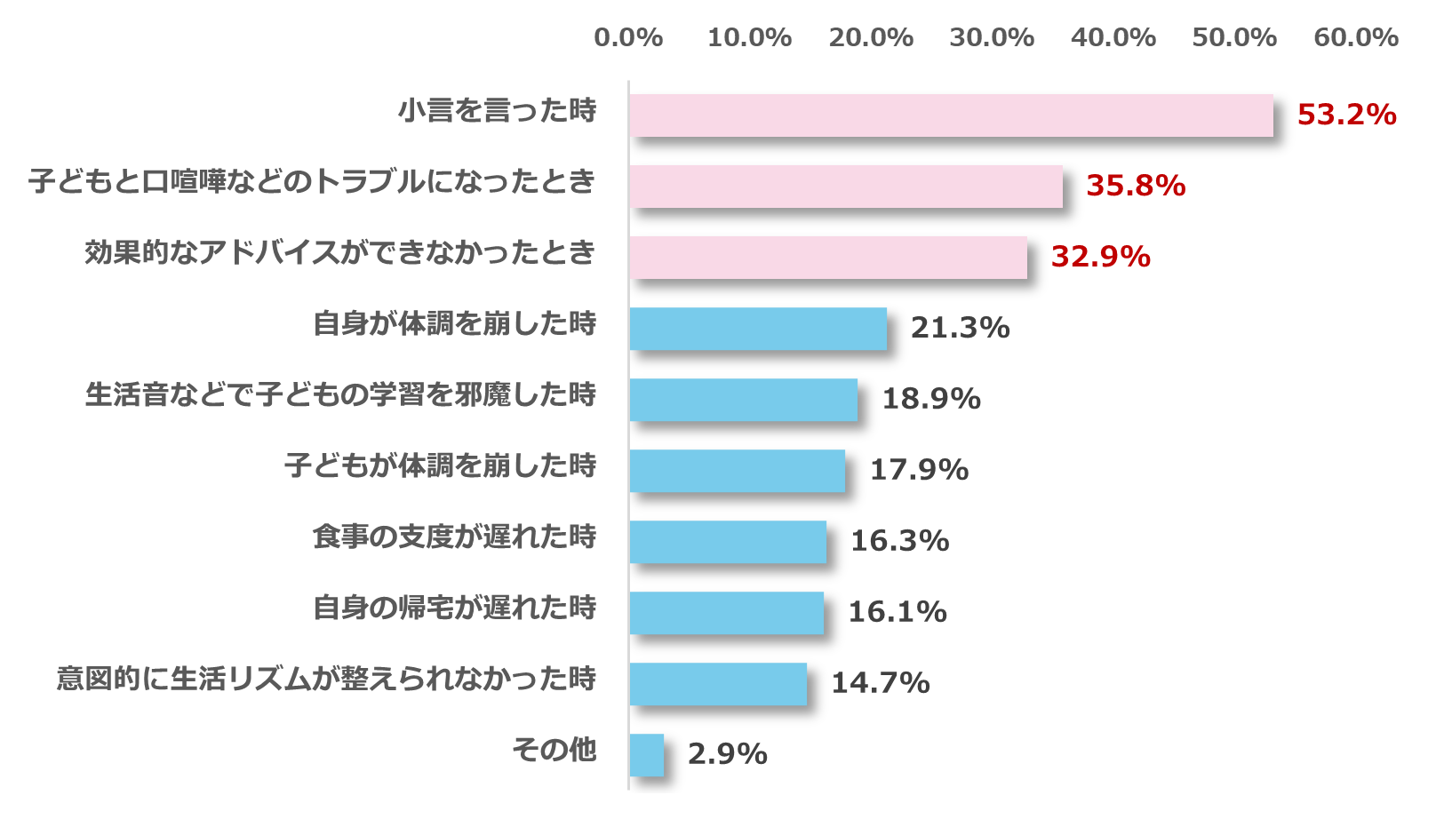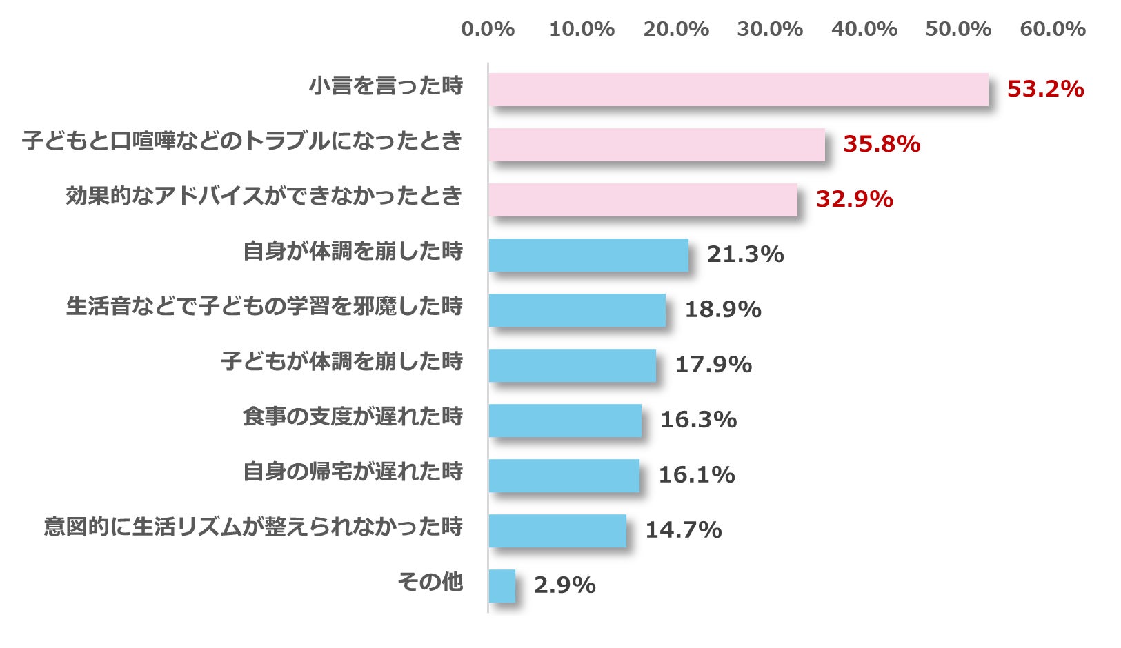 受験生の足を引っ張っていると感じるとき、最多回答は「小言を言った時(53.2%)」