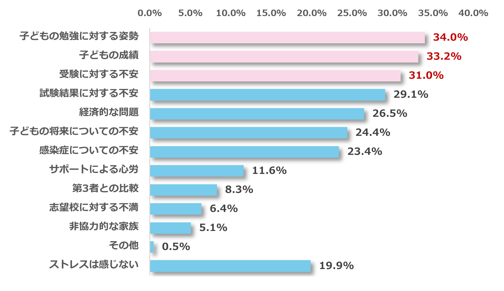 保護者が感じるストレス、最多回答は「子どもの勉強に対する姿勢(34.0%)」