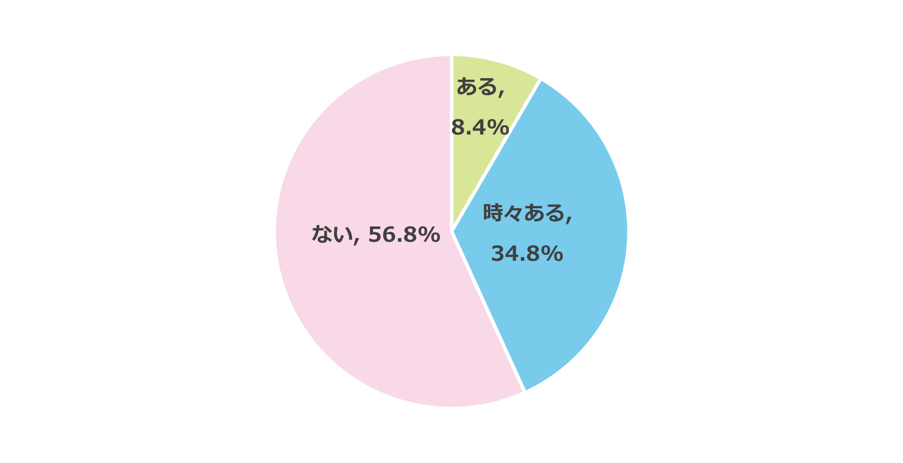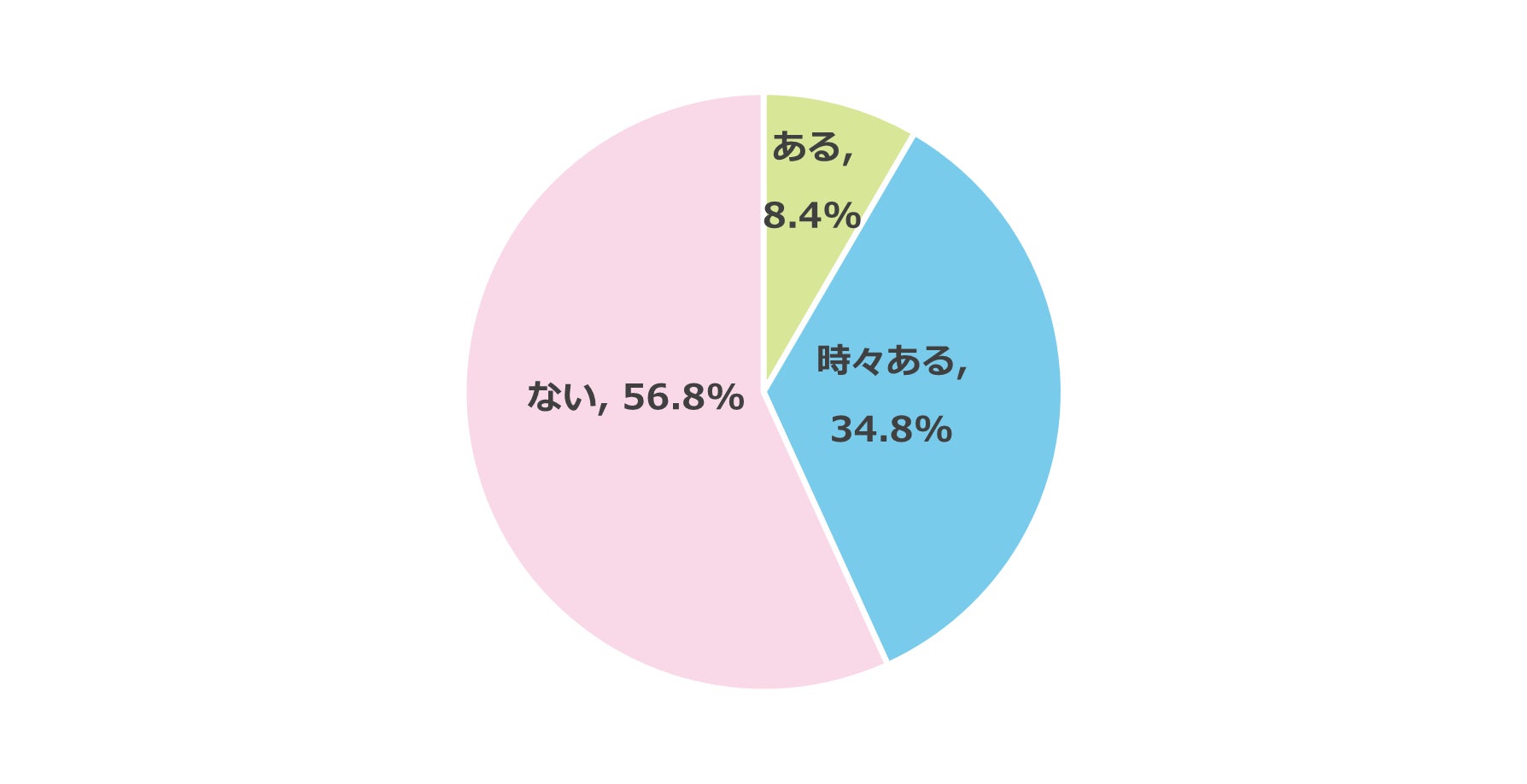 受験生の子どもを持つ保護者880名を対象に、受験生の子どものサポート時に、足を引っ張っていると感じることがあるか質問したところ、43.2%が「ある」(ある:8.4%、時々ある:34.8%)と回答しました。「ない」と回答した方は56.8%でした。