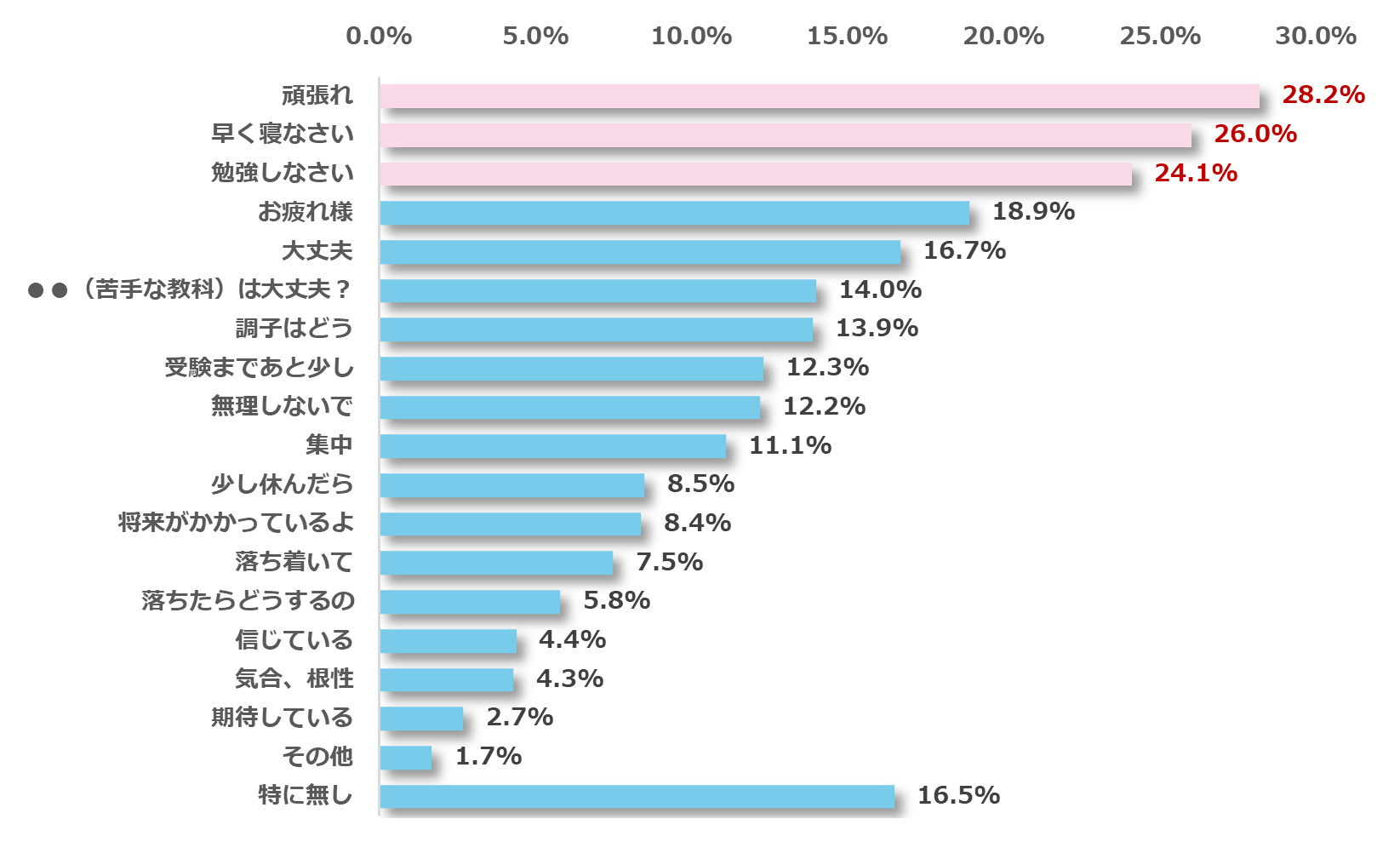 ・保護者が受験生によく言うセリフTOP3、「頑張れ」「早く寝なさい」「勉強しなさい」