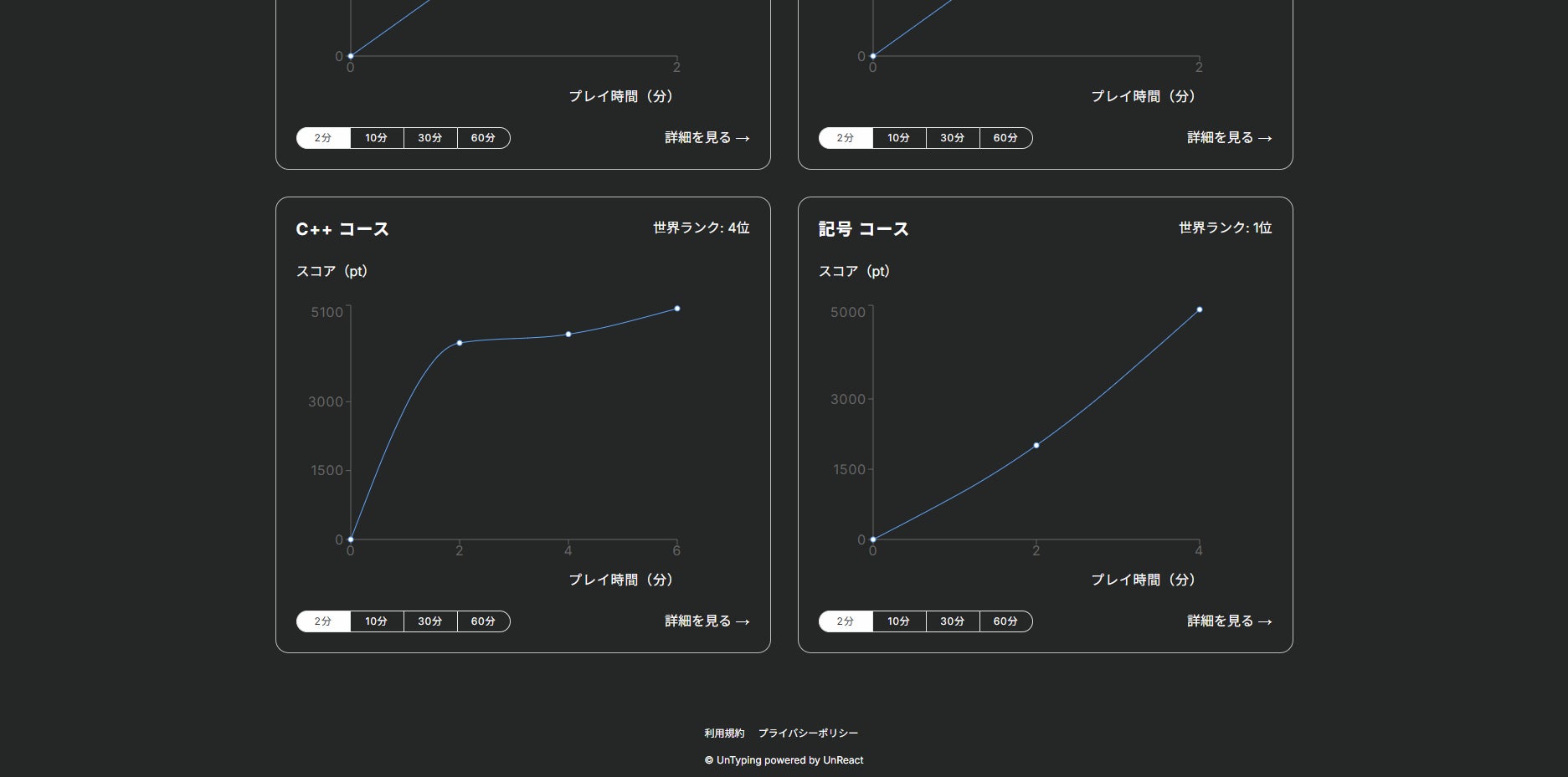 プログラミングタイピングゲーム「UnTyping」は、成長の記録を確認することができます。