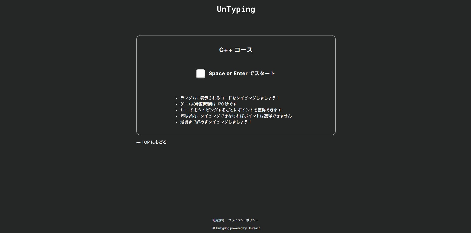 UnTyping - エンジニア向けプログラミングタイピングゲーム(C++ コース)