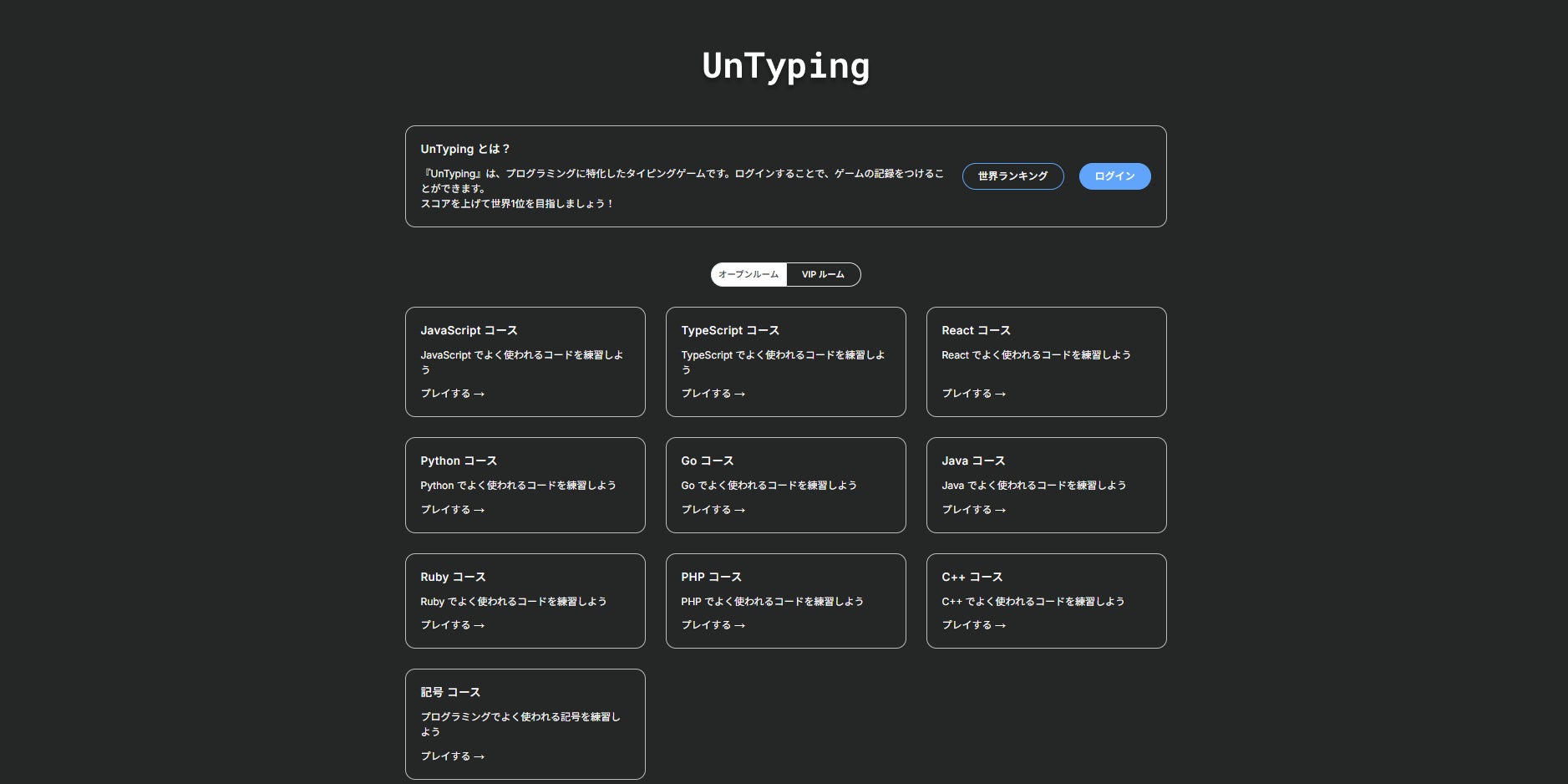 UnTyping は、プログラミングの練習に特化したエンジニア向けのタイピング練習ゲームです。