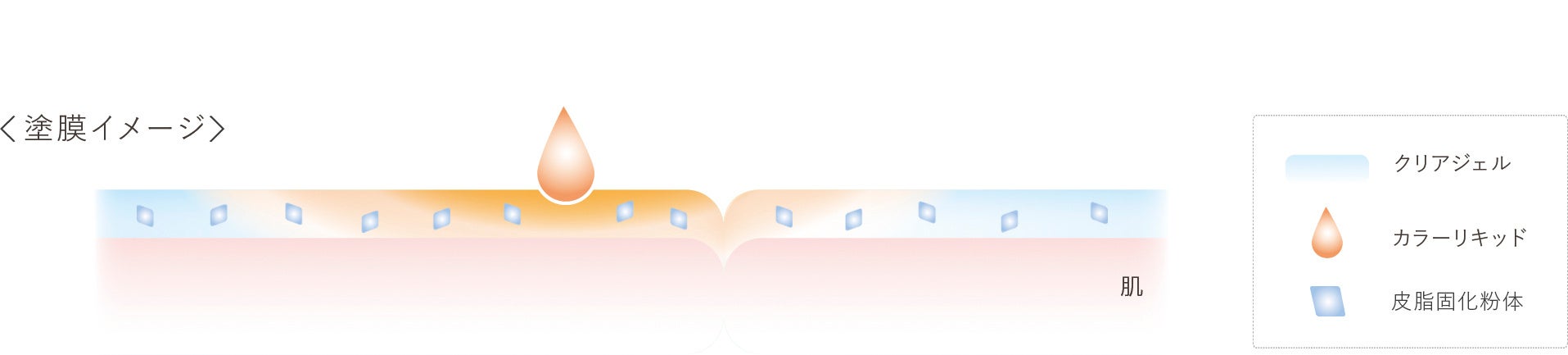 キメの凹凸に追従し肌と一体化するように密着する「クリアジェル」に、粉感レスな「カラーリキッド」を配合することで、伸びがよく、均一にカバー。肌と一体感のある仕上がりが長時間持続します。