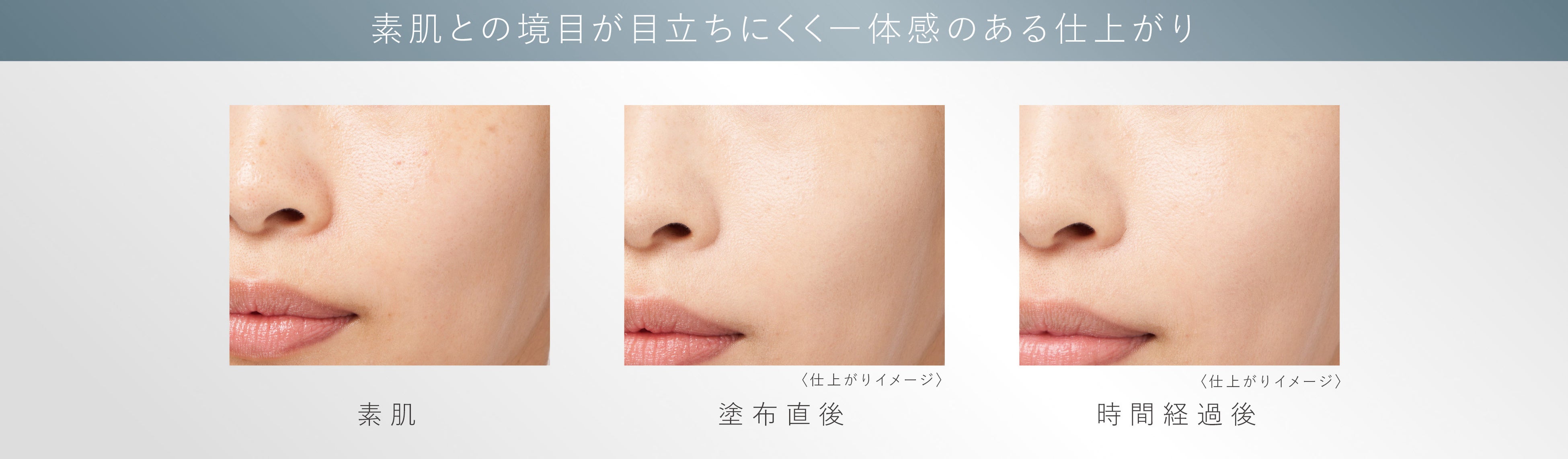 素肌との境目が目立ちにくく一体感のある仕上がりに。