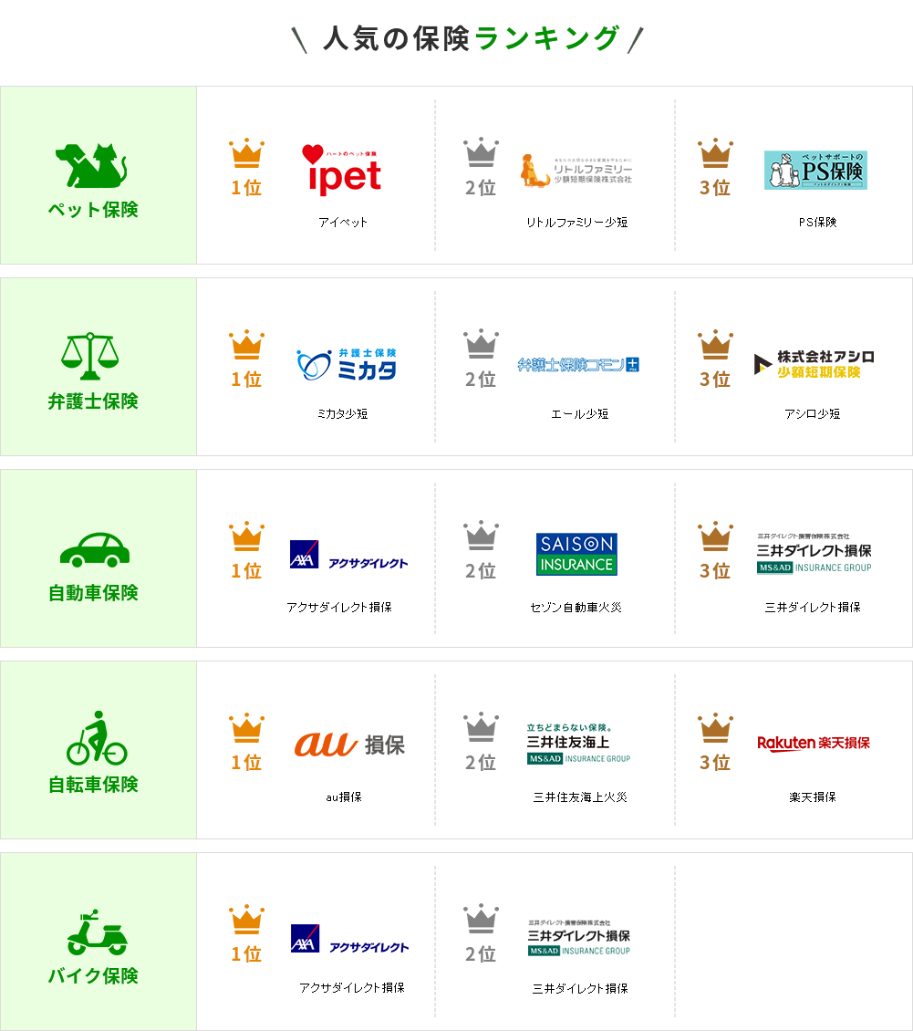 このページでは、当社運営保険メディア全体での契約件数に基づいたランキングをご紹介しています。