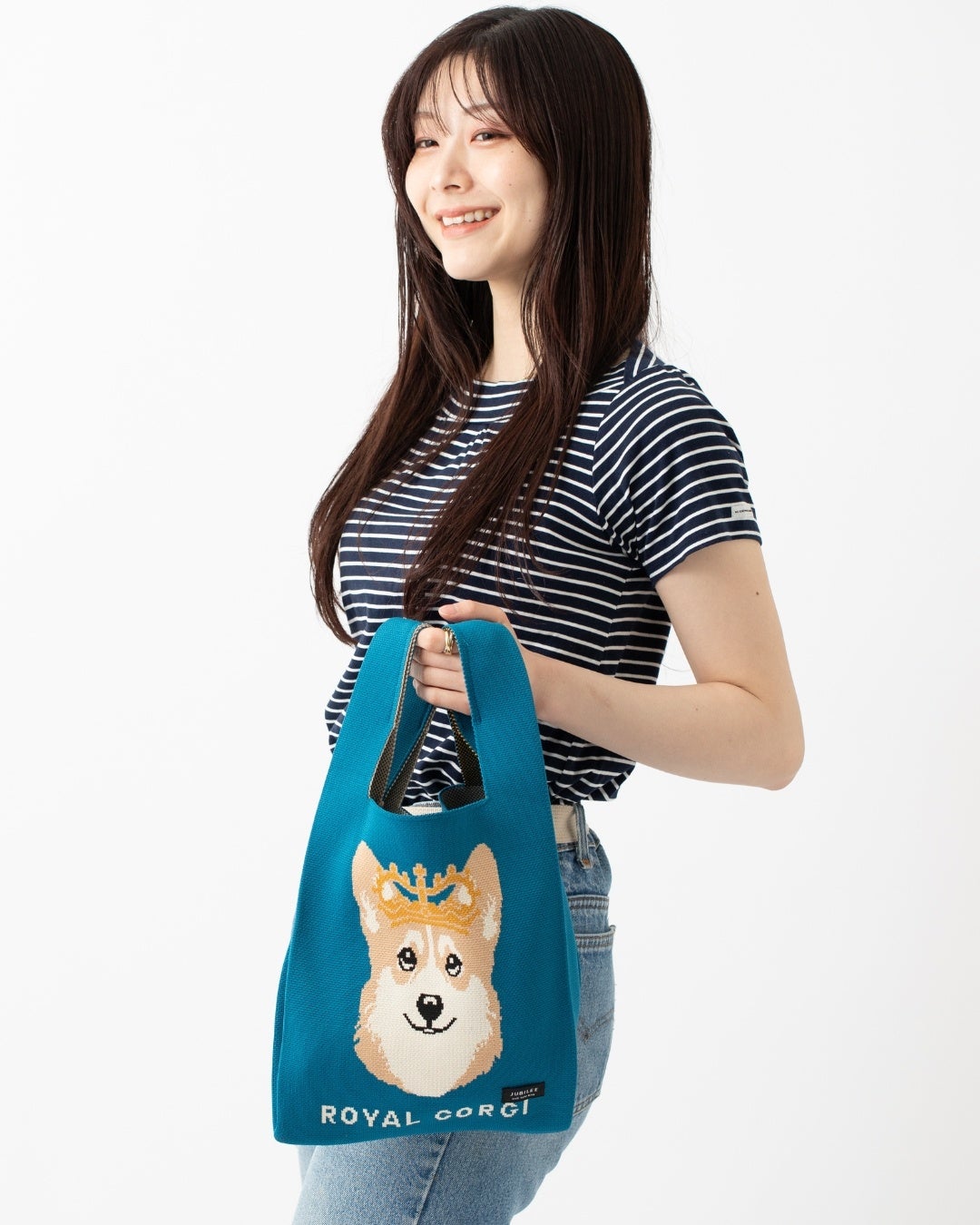 愛嬌たっぷりな笑顔ともっちりおしりが裏面までキュートなコーギーデザインニットバッグが登場