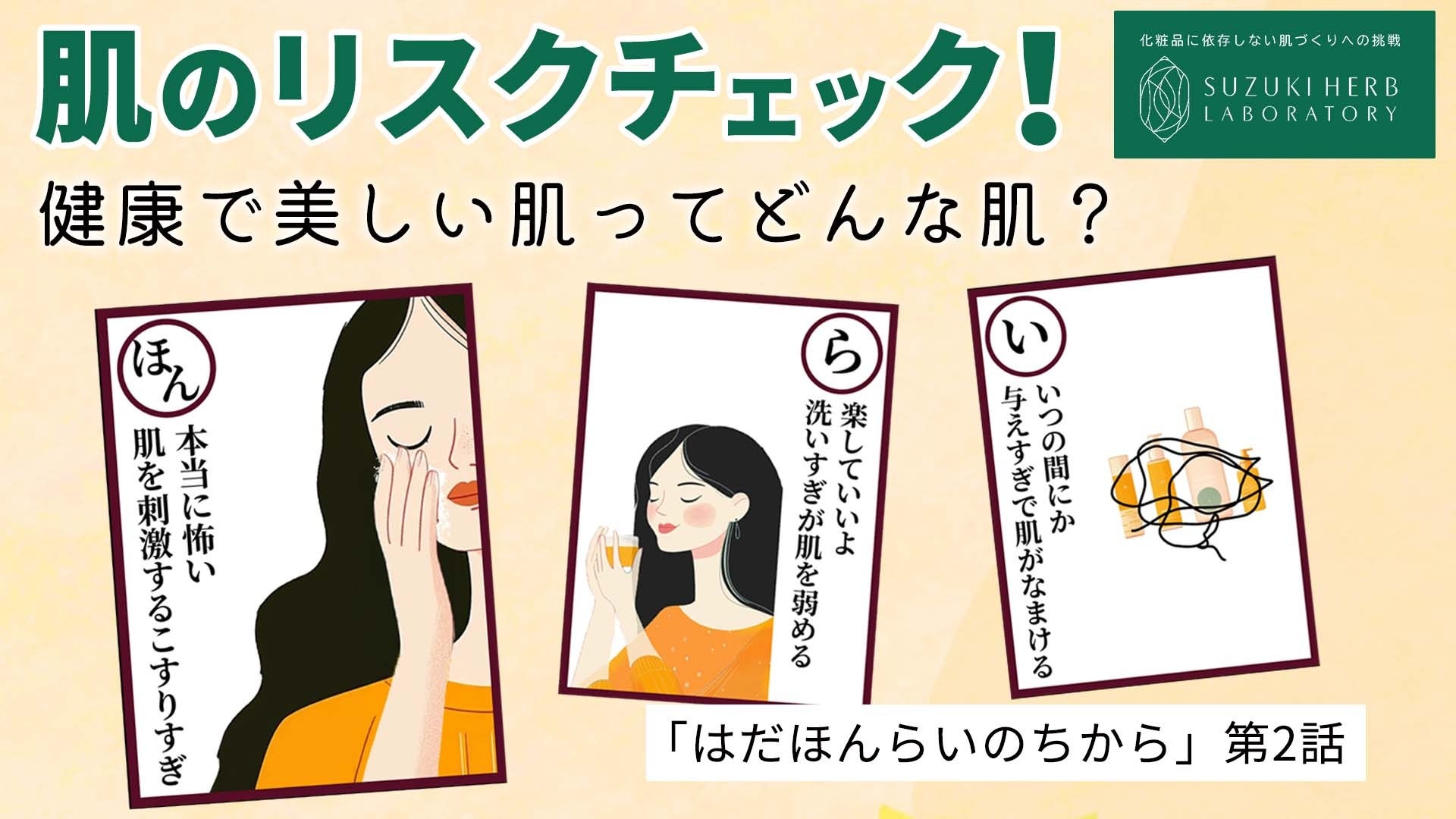 「納豆ローション」という化粧水をきっかけに2004年に創業した株式会社鈴木ハーブ研究所は、2025年7月10日(木)からYouTubeで弊社の考えるおすすめのスキンケア方法についてお話する動画「はだほんらいのちから」を全3話構成で公開します。