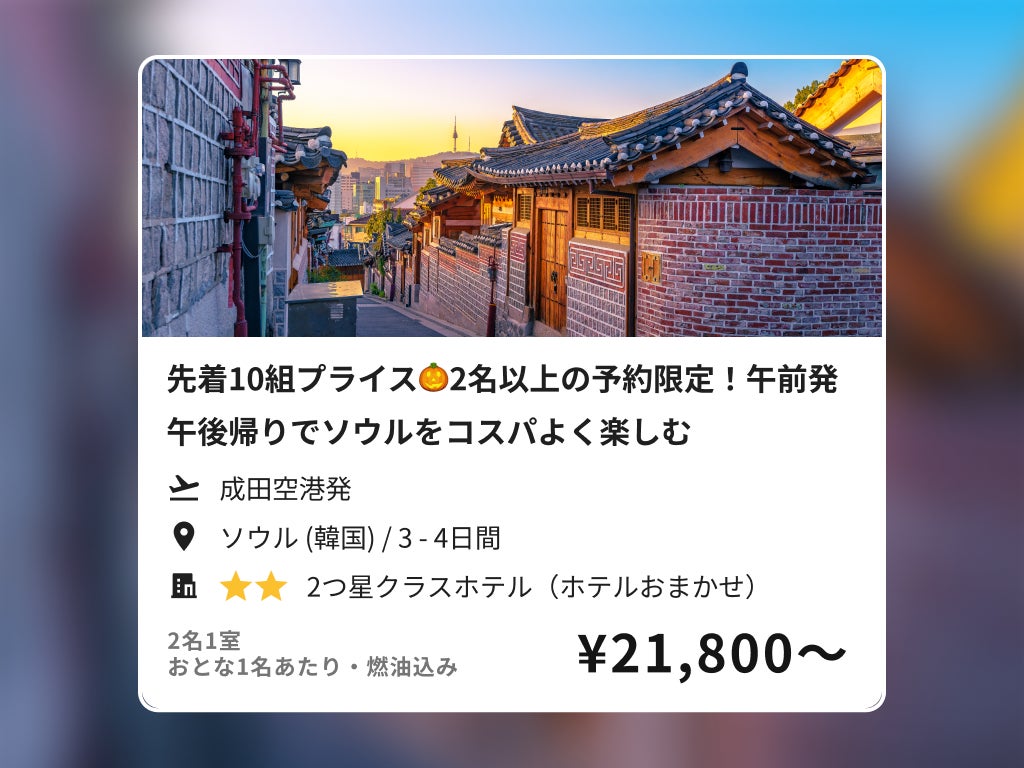 先着10組プライス🎃2名以上の予約限定!午前発午後帰りでソウルをコスパよく楽しむ