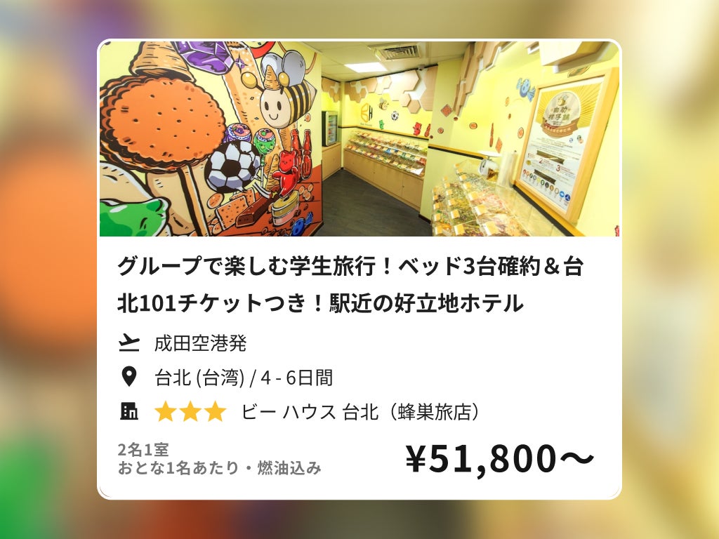 グループで楽しむ学生旅行!ベッド3台確約&台北101チケットつき!駅近の好立地ホテル