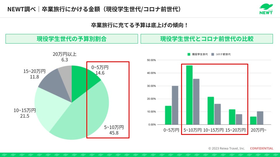 これは、コロナの影響を受けた世代はこれまで旅行に使っていなかった分予算をさこうという意思があったり、円安・物価高で予算が上がることを余儀なくされていたりということが理由として考えられます。