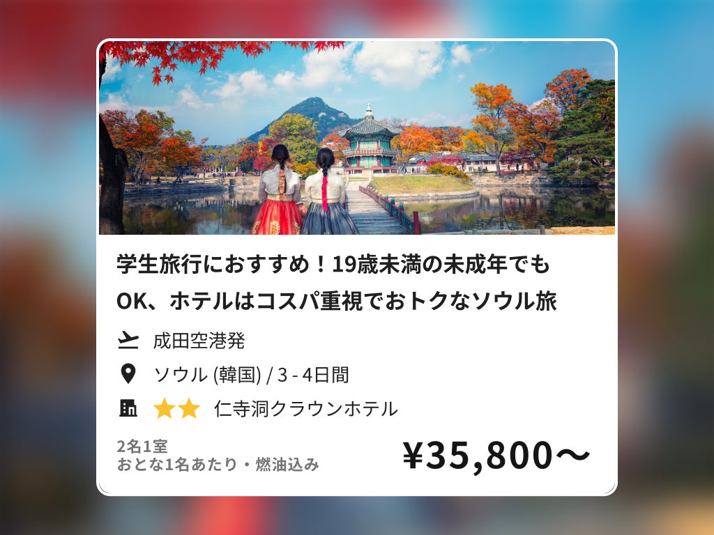 学生旅行におすすめ!19歳未満の未成年でもOK、ホテルはコスパ重視でおトクなソウル旅