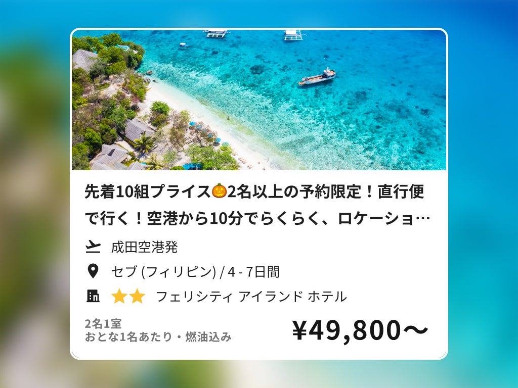 <料金>51,800円〜(大人1名・燃油サーチャージ込み ※表示料金に加え、別途諸税がかかります。)