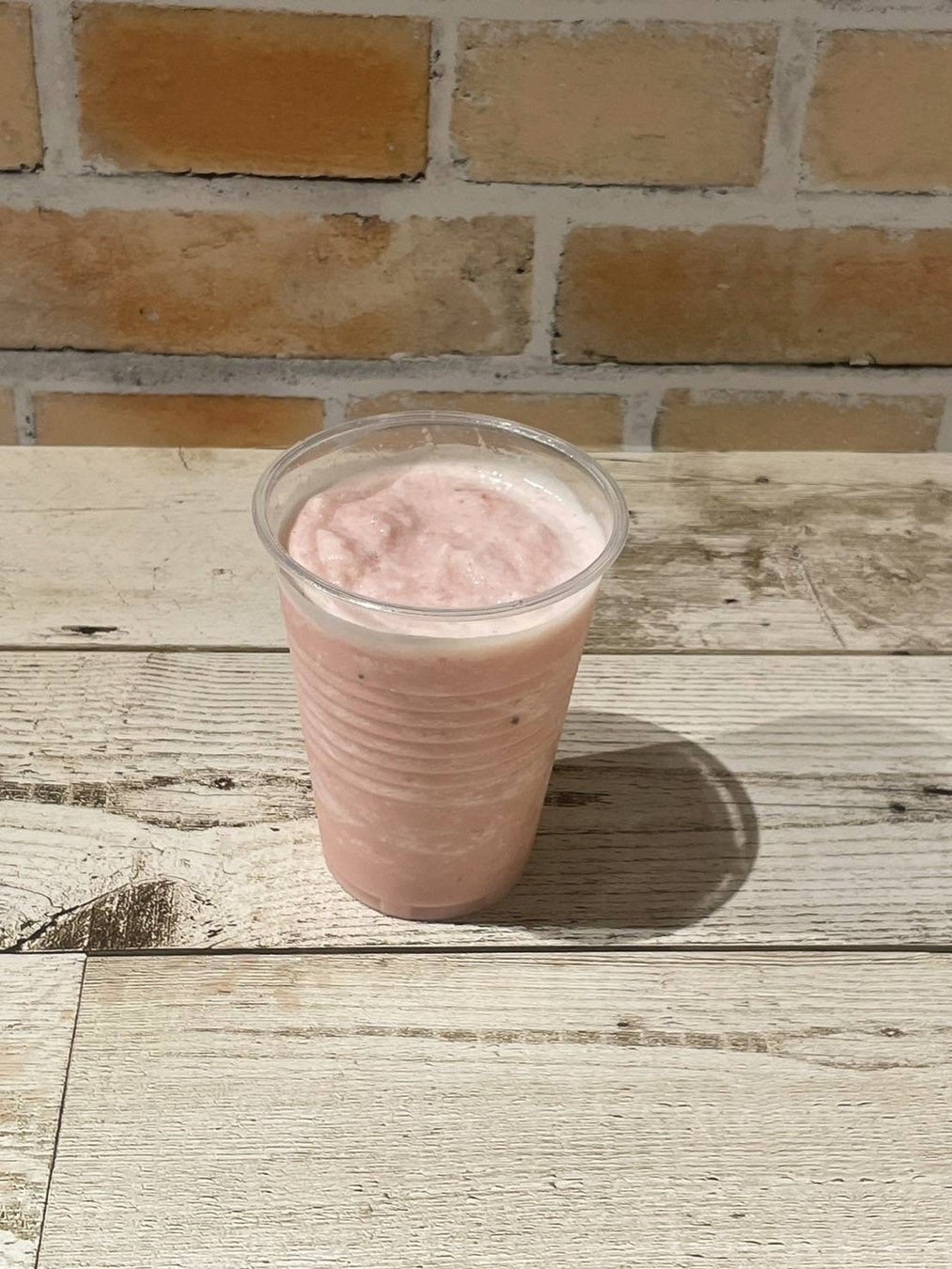 たっぷりの鳥取すいかに、白バラ牛乳とレモン汁でスムージーを作りました。