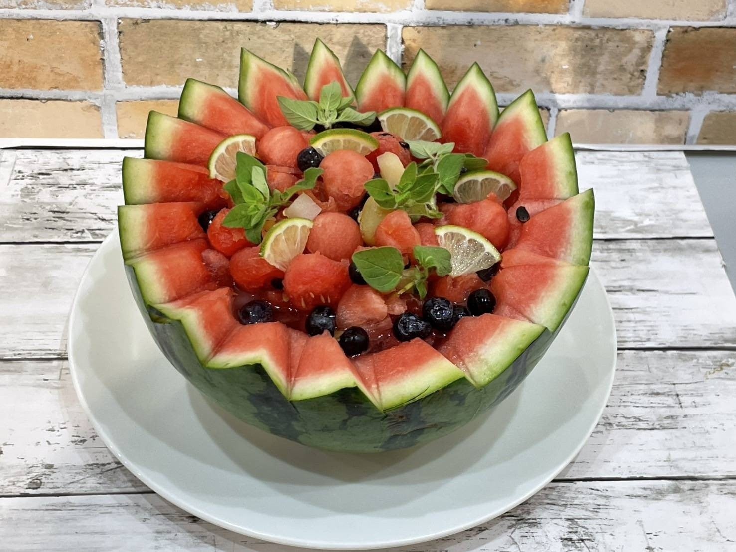 ▼ももてなし家史上最大級!スイカのフルーツポンチ(6,600円税込み) ※前日迄要予約、1日1組限定