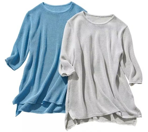 右下:【日本製】和紙チュニックニット サックス、ライトグレー 8,990円(税込)~