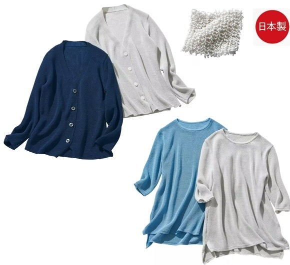 【新商品発売情報】麻ライクな風合いで涼しげな注目の新素材“和紙ニット”を使った『【日本製】和紙ニットカーディガン』『【日本製】和紙チュニックニット』が新登場!