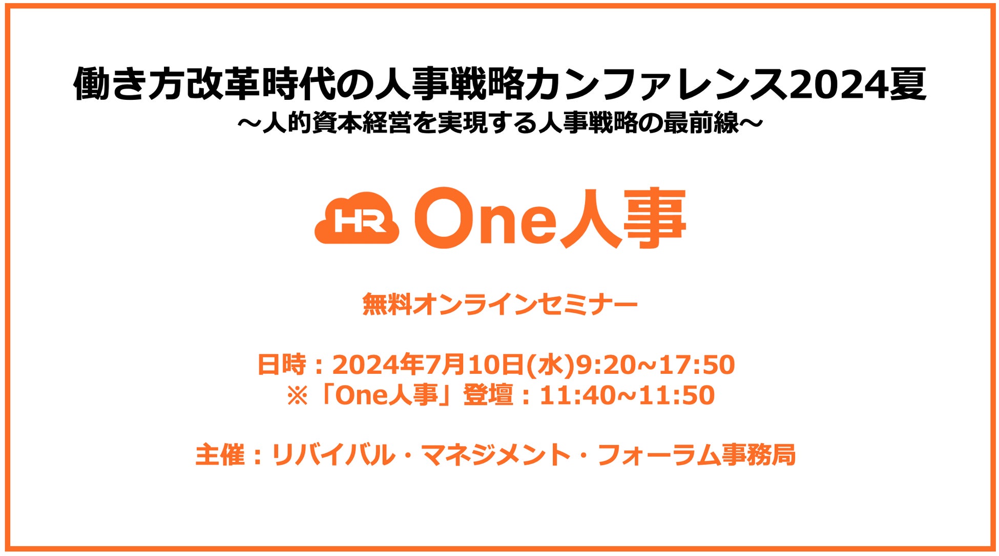 【7/10無料セミナー】『働き方改革時代の人事戦略カンファレンス2024夏』へ「One人事」が登壇決定!