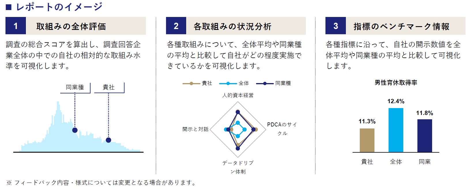 本調査では、実態調査結果の発信にとどまらず、回答企業への個別の診断レポートの無償提供や、優れた取組みを実践している企業の表彰等も実施することで、わが国における人的資本経営・開示の浸透・発展に貢献してまいります。
