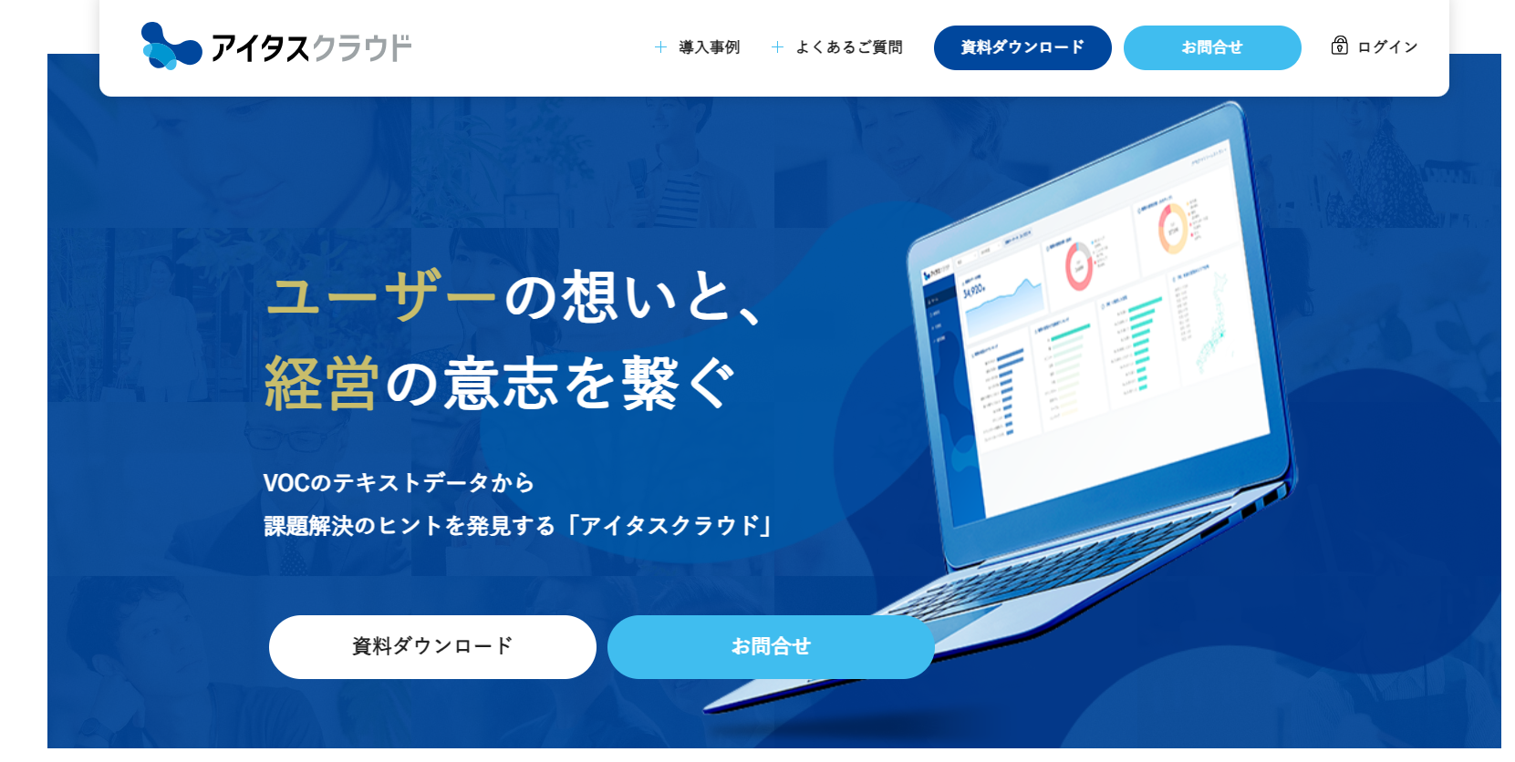 「アイタスクラウド」は最先端の自然言語処理技術を用いた文章解析AI「アイタス」をエンジンとするデータ解析ダッシュボードであり、VOCを可視化するだけでなく、独自のフレームワークにより優先課題を明らかにすることで課題解決のヒントを見つけ、打ち手に繋げることができる業務支援ツールです。