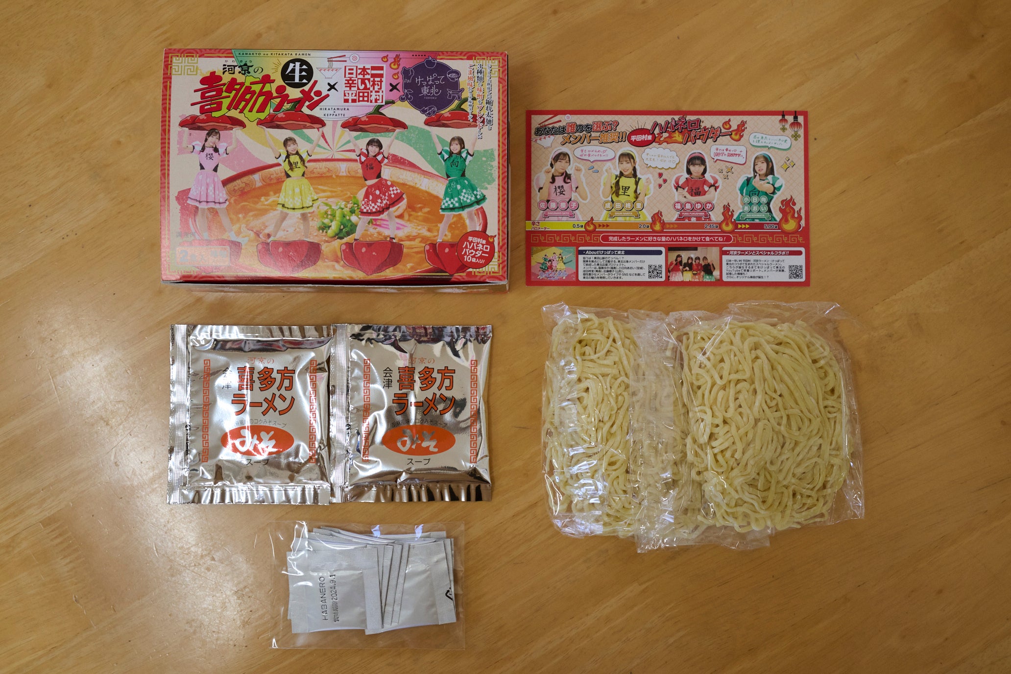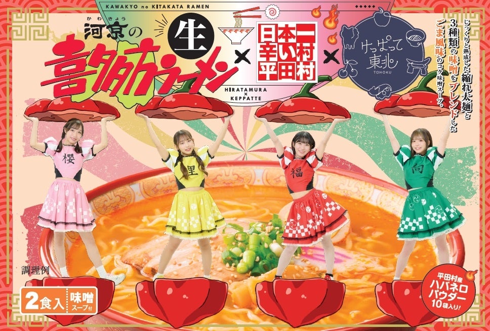 喜多方ラーメンの河京と日本一辛い村平田村、そして東北・関東を中心に活動するアイドルグループ「けっぱって東北」のコラボによって生まれた『ハバネロ味噌ラーメン』が、渋谷レックス株式会社より2024年3月2日に発売されました。