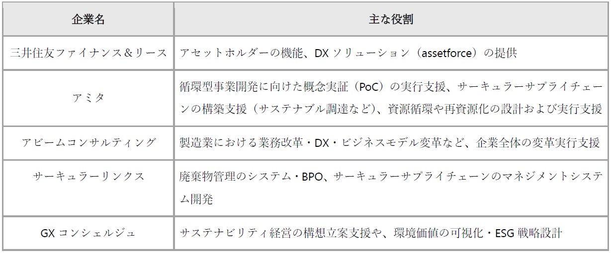 三井住友ファイナンス&リース株式会社、アミタ株式会社、アビームコンサルティング株式会社、サーキュラーリンクス株式会社、株式会社GXコンシェルジュの5社は、製造業のサステナビリティ経営を加速させるトータルソリューション「Circular Co-Evolution」(以下「CCE」)の提供を開始することをお知らせします。