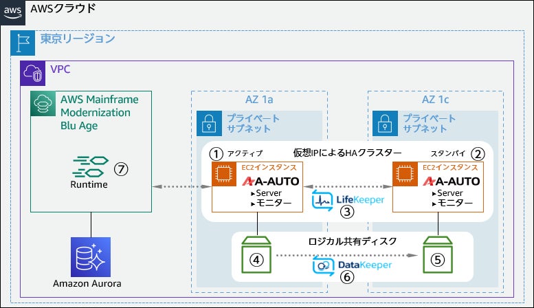 【図】AWS Blu Ageと連携する「A-AUTO」の高可用性環境の例
