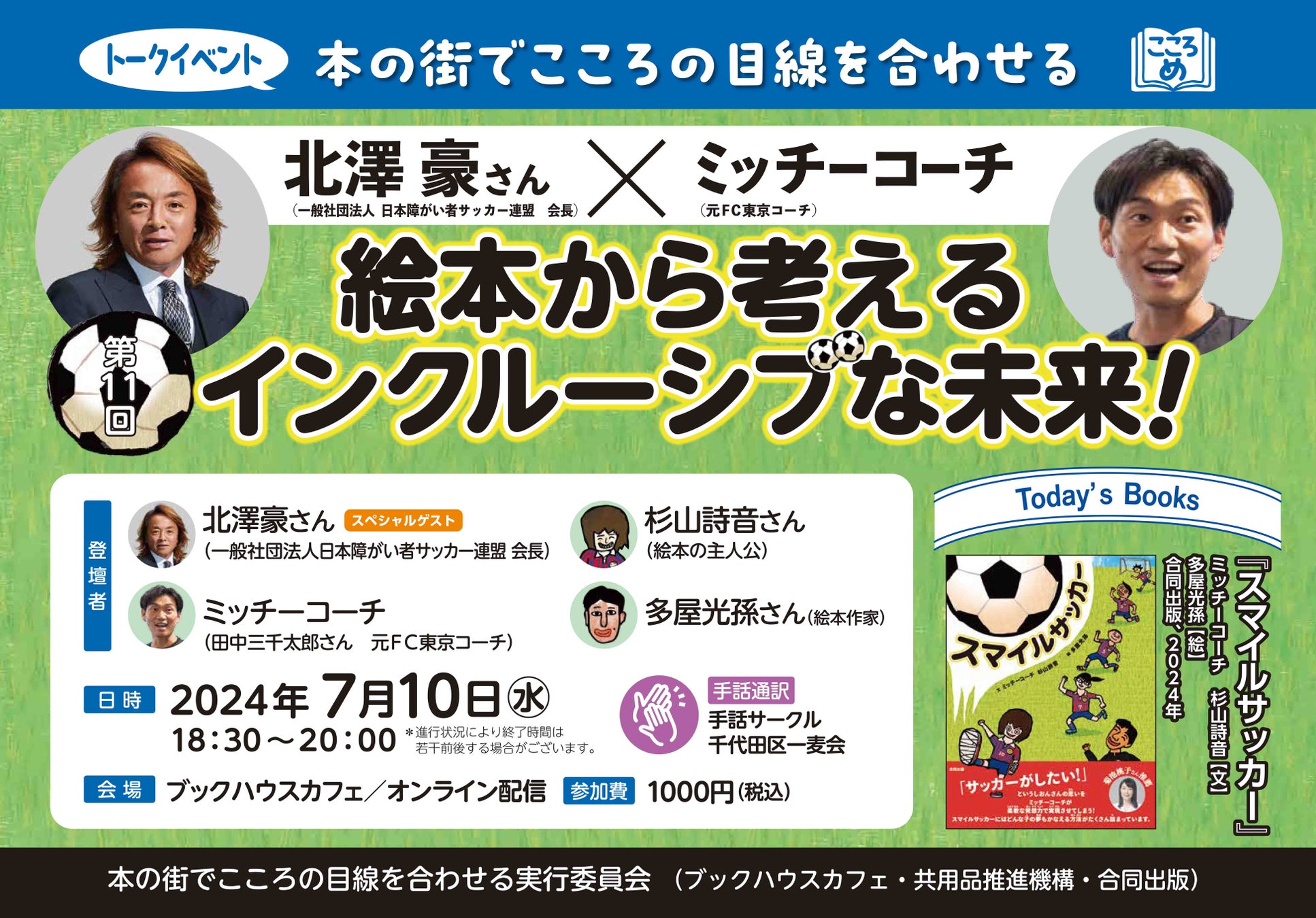 7月10日(水)トークイベント開催 本の街で心の目線を合わせる 第11回「北澤豪さん × ミッチーコーチ「絵本から考えるインクルーシブな未来!」」を開催いたします。