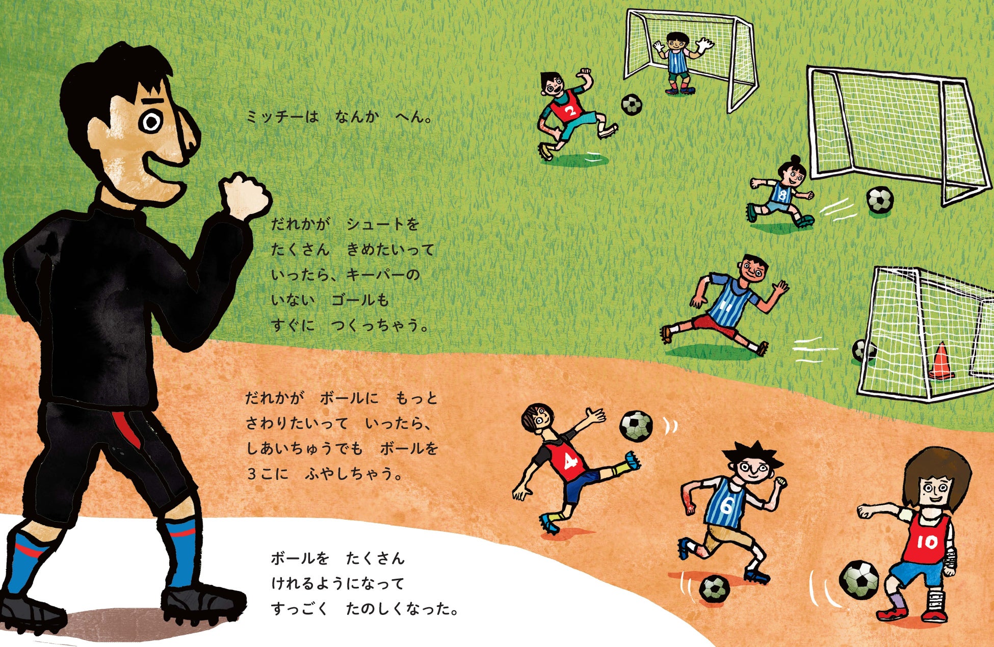 「みんなといっしょにサッカーがしたい!」という詩音さんの願いを聞いたミッチーコーチは、だれでも参加OKのサッカー教室を本当につくってしまいます。