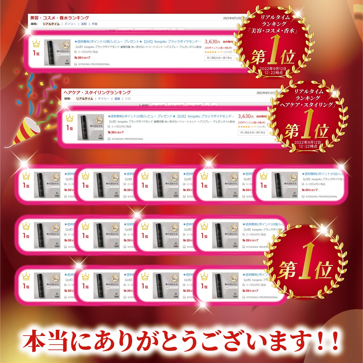 株式会社kyogokuが展開する美容ブランド「KYOGOKU PROFESSIONAL」で人気の「KYOGOKU ブラックダイヤモンド」が楽天の人気ランキングで15冠達成しました!
