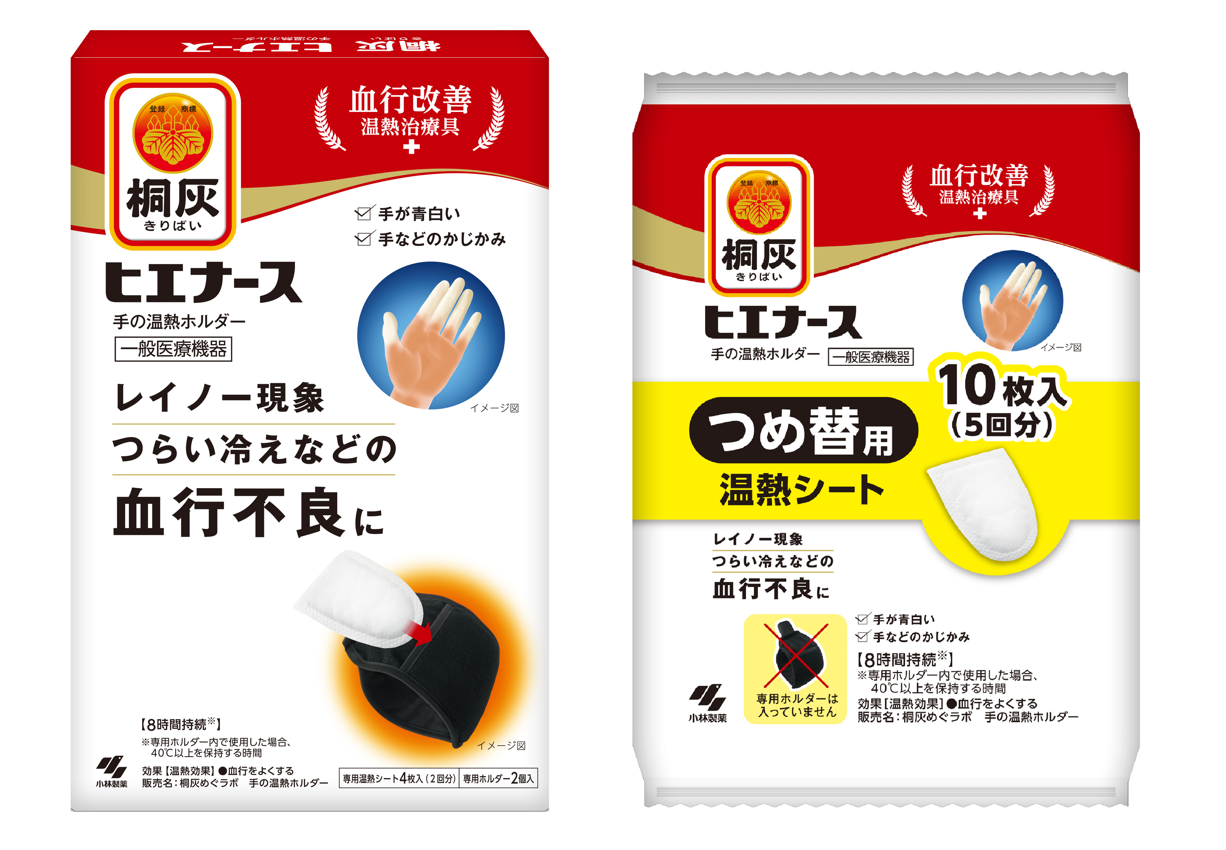 レイノー現象やつらい冷えなどの血行不良に対し、新しい有効手段を提案する医療機器「桐灰 ヒエナース 手の温熱ホルダー」