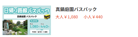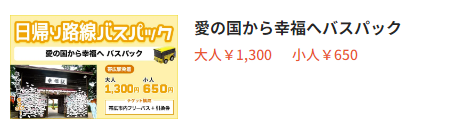 バス往復券と観光地利用料金がセットになった「日帰りバスパック」、