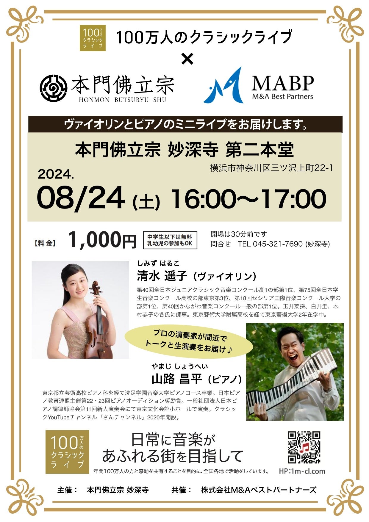【M&Aベストパートナーズ×100万人のクラシックライブ】8月24日(土)に本門佛立宗 妙深寺にて、クラシックライブを開催!