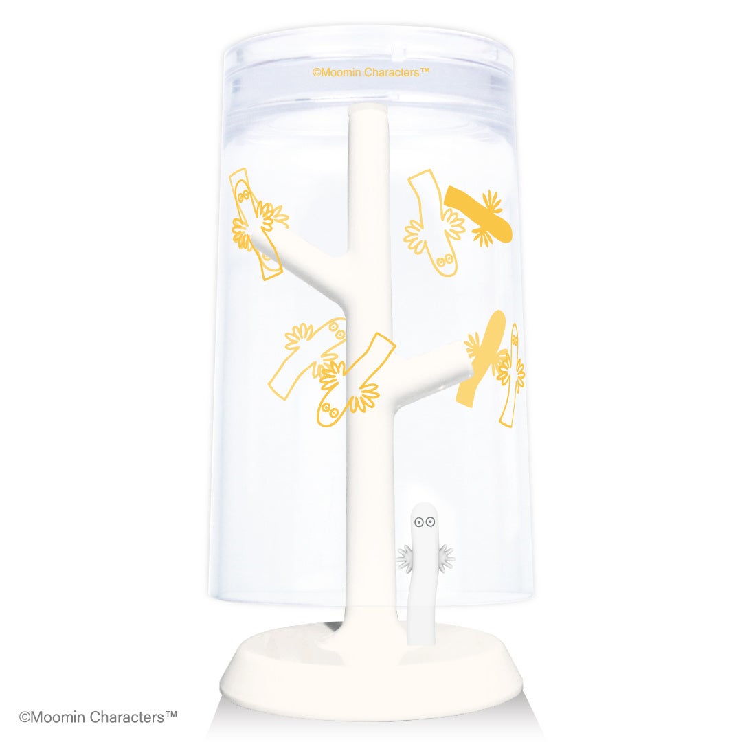 コップをスタンドに重ねると、「ムーミン」や「リトルミイ」たちの世界観が広がるようなデザイン。