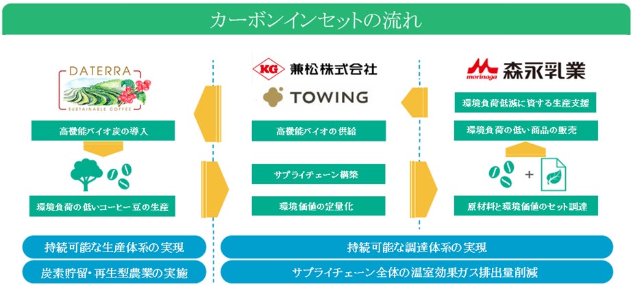 兼松株式会社、森永乳業株式会社、株式会社TOWINGは共同で、コーヒー2050年問題に対する施策およびサプライチェーン全体の温室効果ガス排出量削減策の一つとして、コーヒー豆のサプライチェーンパートナーであるダテーラ農園※1の育苗地を対象に、TOWINGの高機能バイオ炭「宙炭(そらたん)※2」を施用する実証実験を開始しました。