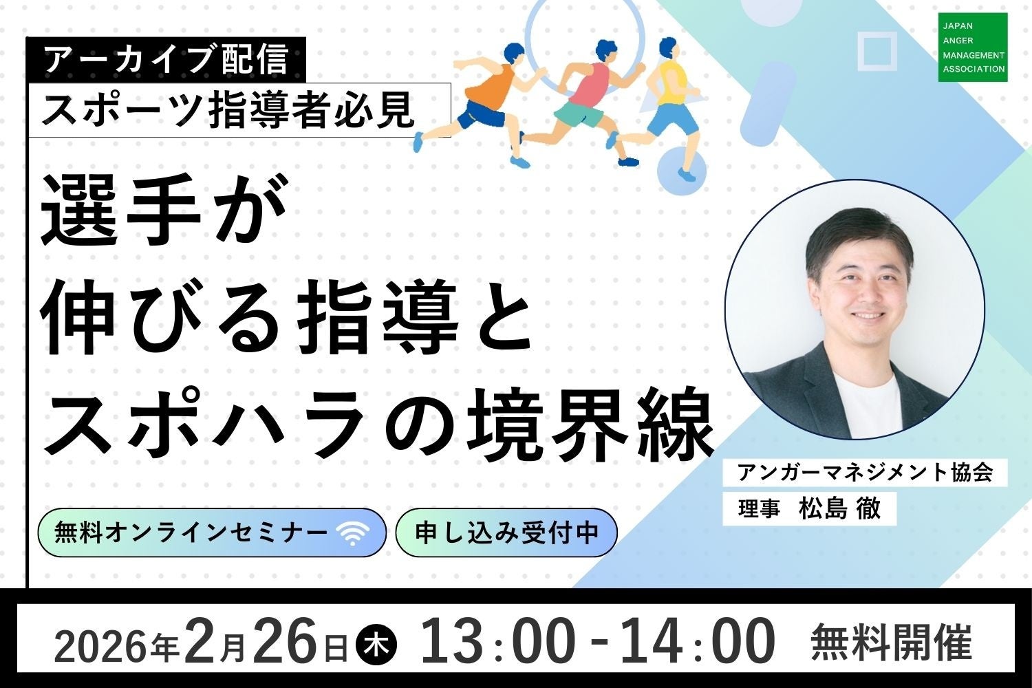 株式会社レビックグローバル(本社:東京都港区、代表取締役社長:柏木 理)が運営する一般社団法人日本アンガーマネジメント協会(所在地:東京都港区、代表理事:戸田久実)は、2025年4月に開催し好評を博したセミナー「スポーツ指導者必見!選手が伸びる指導とスポハラの境界線」のアーカイブ動画を2026年2月26日(木)13時より配信します。
