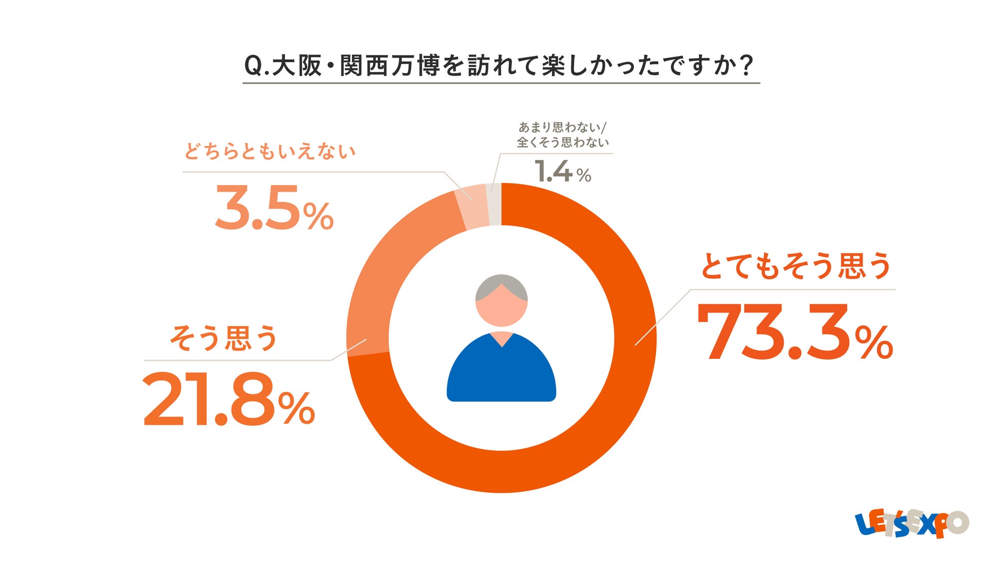 「大阪・関西万博を訪れて楽しかった」と回答した方は95.1%にのぼり、多くが万博に来てよかったと感じていることがわかりました。また、「久しぶりに外出できた」「安心して会場を巡ることができた」「諦めていたパビリオンに入ることができた」といった声も多く寄せられています。