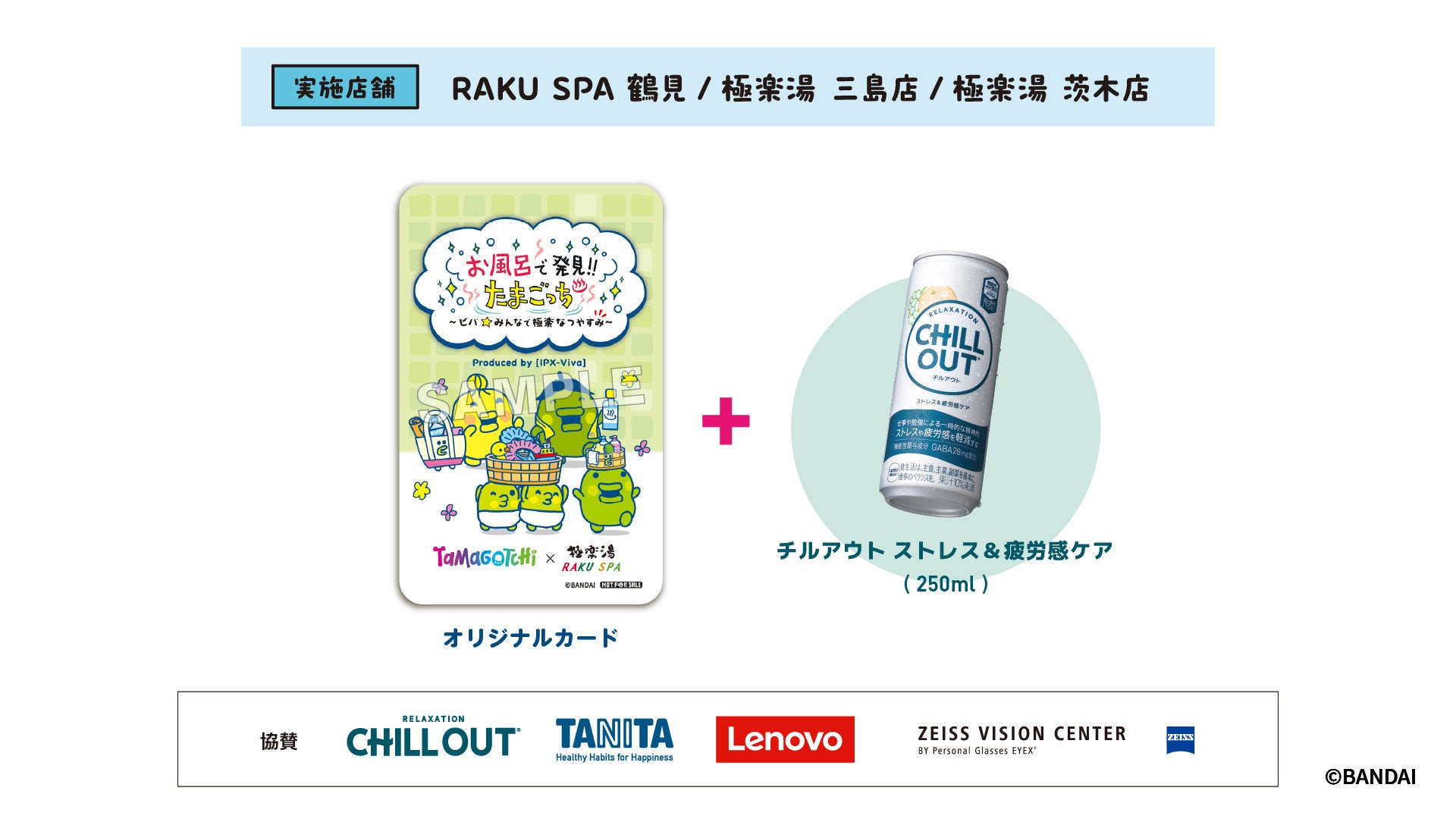 たまごっち×極楽湯・RAKU SPAコラボキャンペーン“お風呂で発見!!たまごっち ~ビバ★みんなで極楽なつやすみ~”