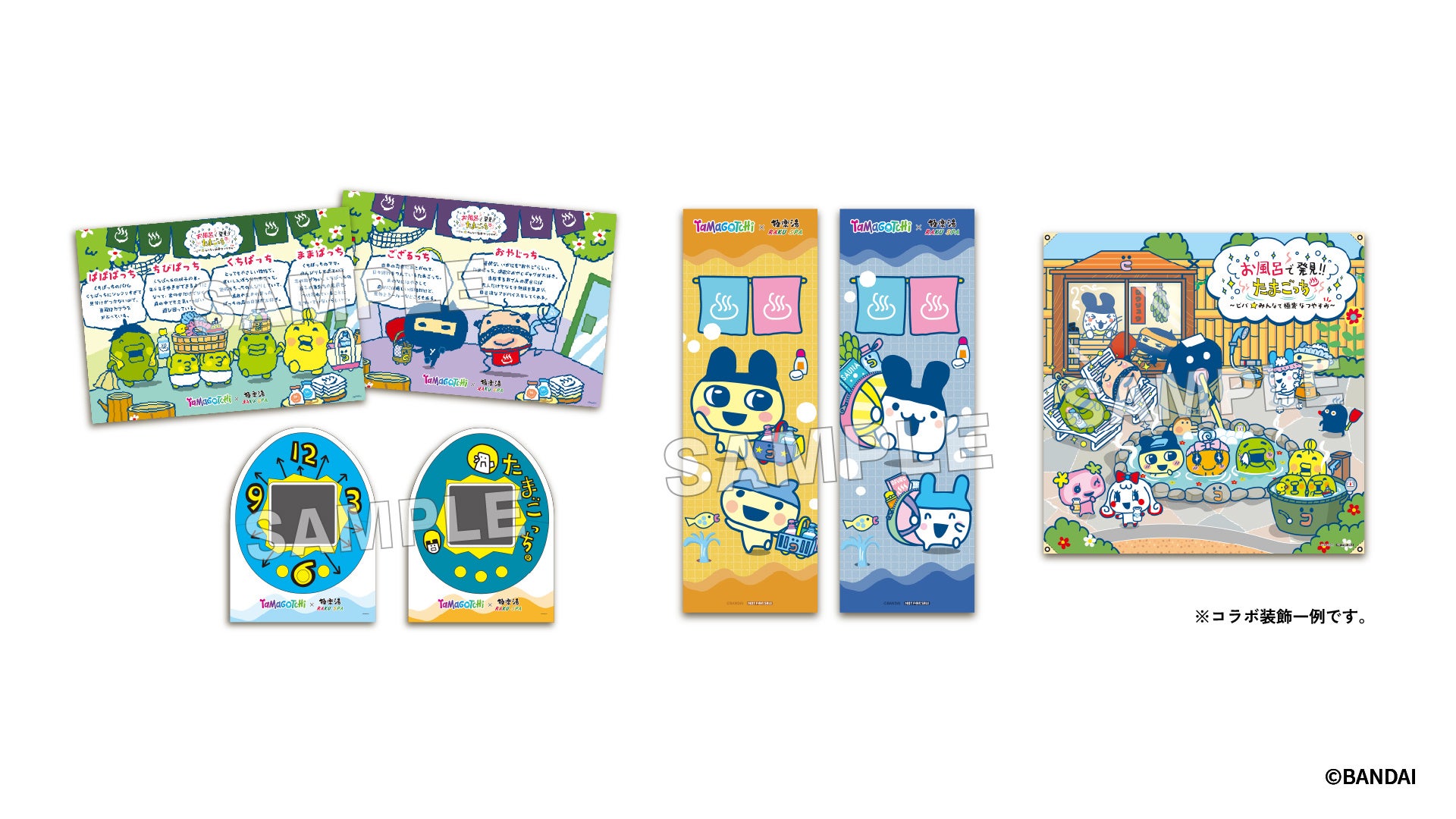 たまごっちたちの住む場所をイメージした5種類のコラボ風呂が登場し、浴室には特別にデザインしたタペストリーを装飾します。各店舗の開催スケジュールはコラボHPをご確認ください。