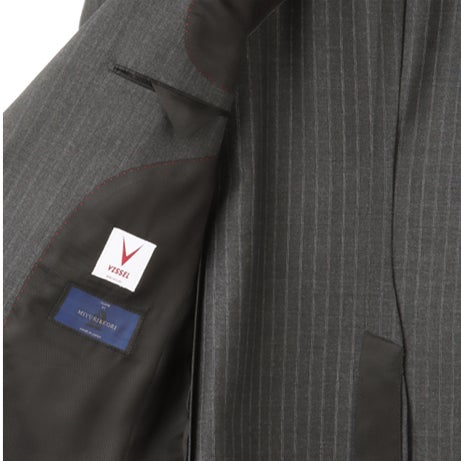 2023年シーズン、創設29年目で初優勝を果たしたクラブにふさわしい、洗練された都会的な雰囲気をイメージさせるチャコールグレーストライプ柄を採用。表地は国内の老舗生地メーカーである「御幸毛織」ならではの、肌触りと風合いの良さが高級感を演出します。また、上着の内側にクラブエンブレムを配置し、見返しのパイピングにはクラブカラーを施した特別仕様です。