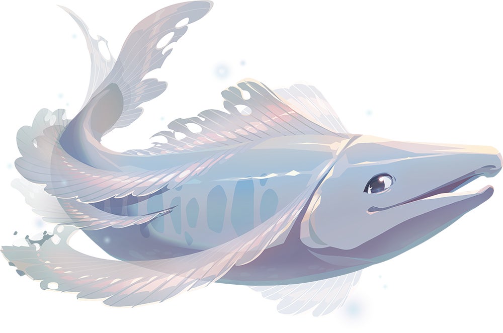 旅の途中で出会うサカナの神霊。何に囚われているのか自分でも分からず、悲しみと自責の念に沈んでいる。