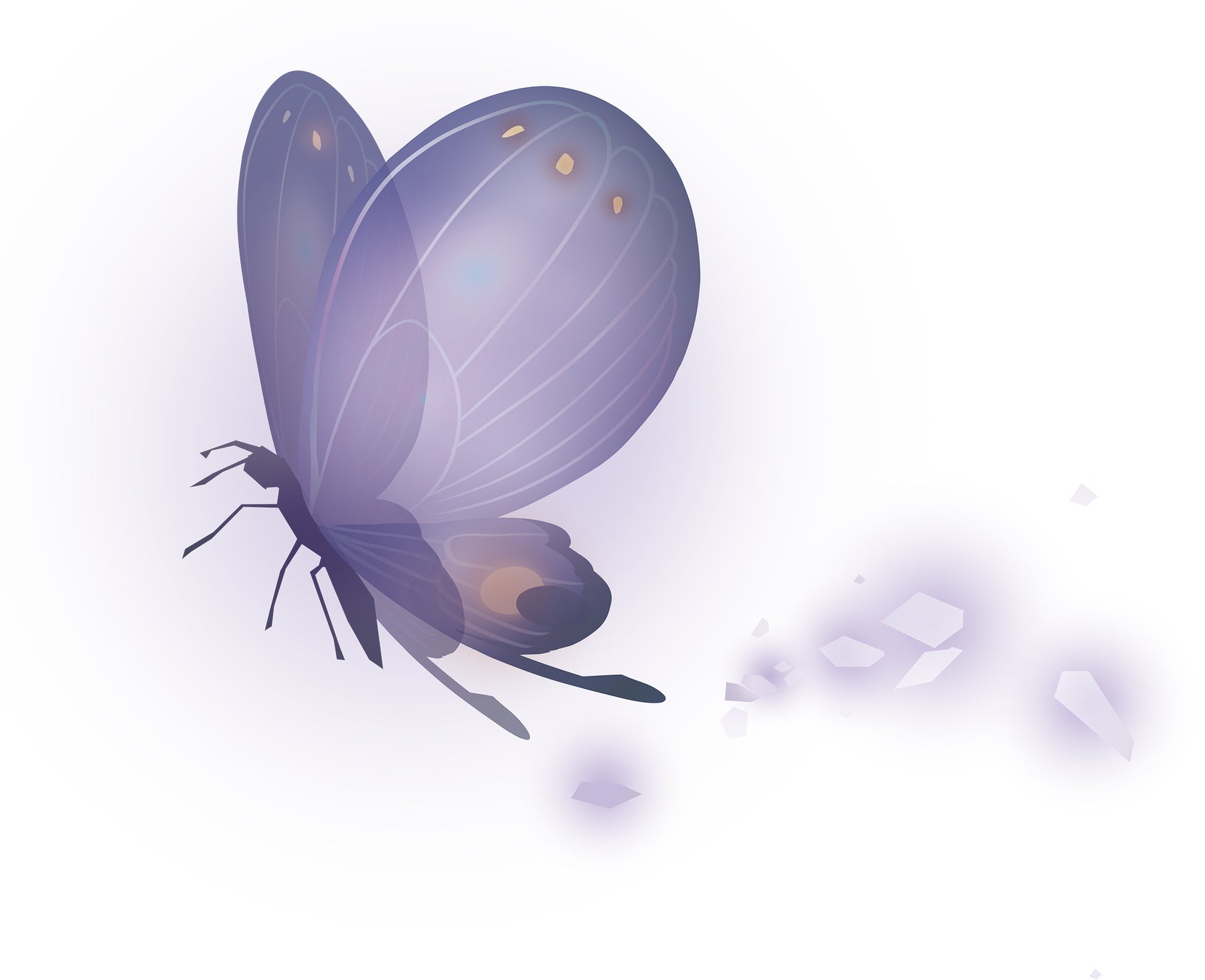 旅の途中で出会う蝶の神霊。翅は、セミの羽よりもさらに薄く、今にも消えてしまいそうな儚さを持つ。