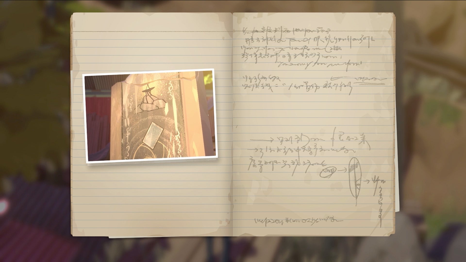 ボロボロの表紙に、不思議な文字が書かれた古いノート。撮影した写真や、神霊との交流で手に入る情報を書き込むことで、真実が徐々に浮かび上がってきます。