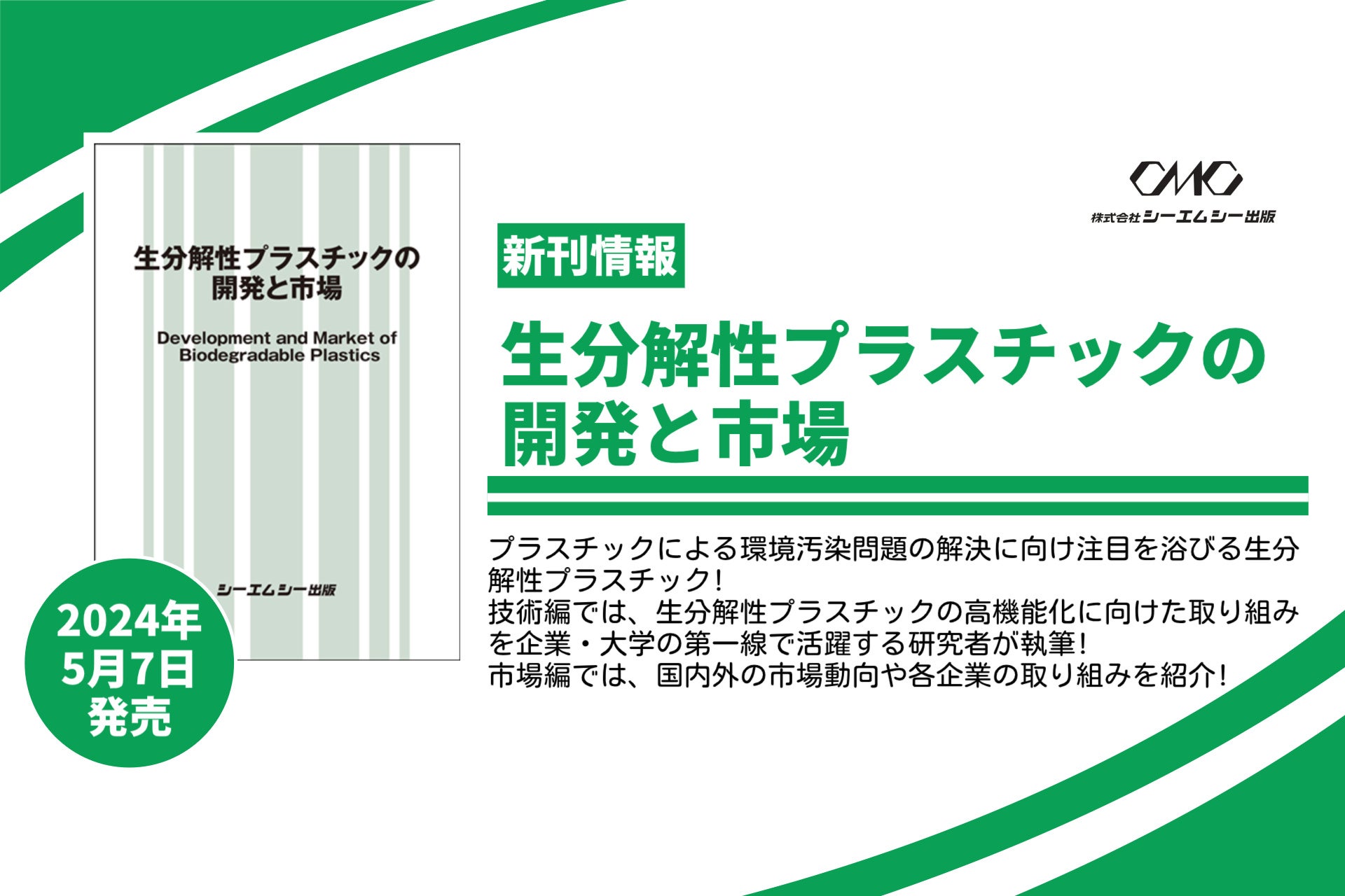 本書が各種生分解性プラスチックに携わる方々の研究開発やビジネスチャンスのヒントを掴む一助になれば幸いである。 (本書「はじめに」より)