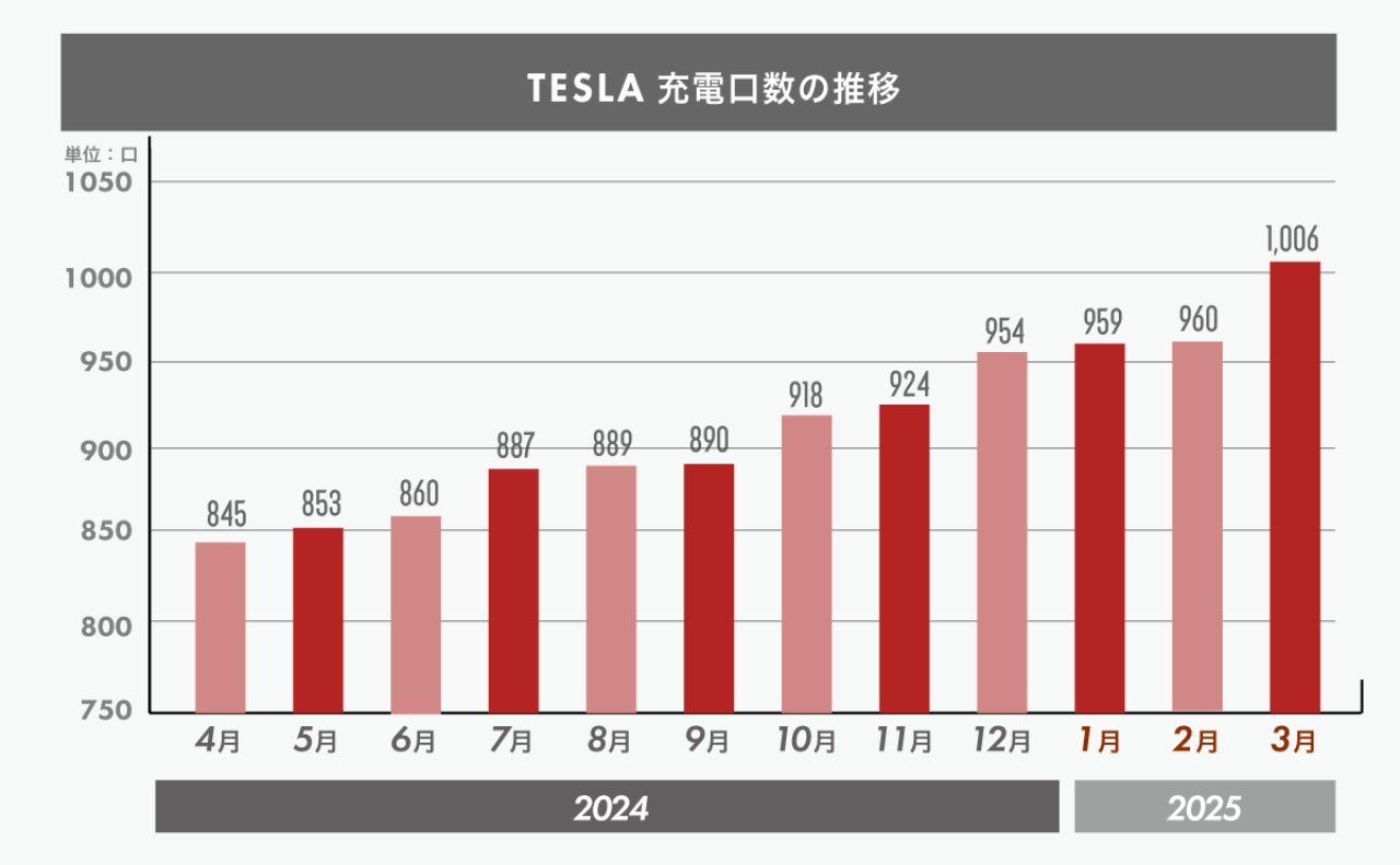 TESLA 充電口数の推移(2024年4月~2025年3月)