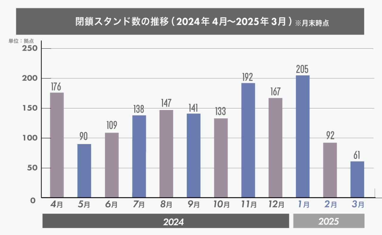 閉鎖スタンド数の推移(2024年4月~2025年3月)